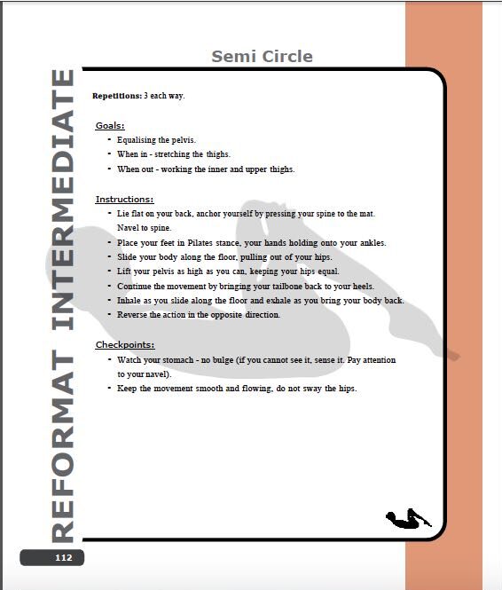 A comprehensive book on pilates used as a manual for pilates reformer teacher training. A pilates book for beginners as well as a book for instructors. All pilates reformer exercises are highlighted showing you how to do the reformer at home, as well as on a studio reformer.